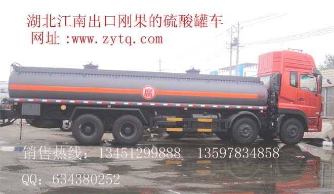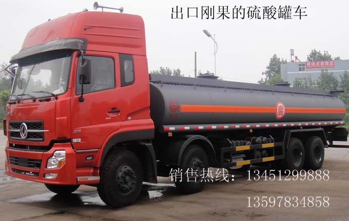 發(fā)布時(shí)間:2012-10-13 10:13:53 瀏覽量:次2010年7月27日,我公司出口了一臺(tái)硫酸罐車到剛果**,此車采用東風(fēng)天龍前四后八的的底盤(pán),罐體20立方米車輛圖片如下